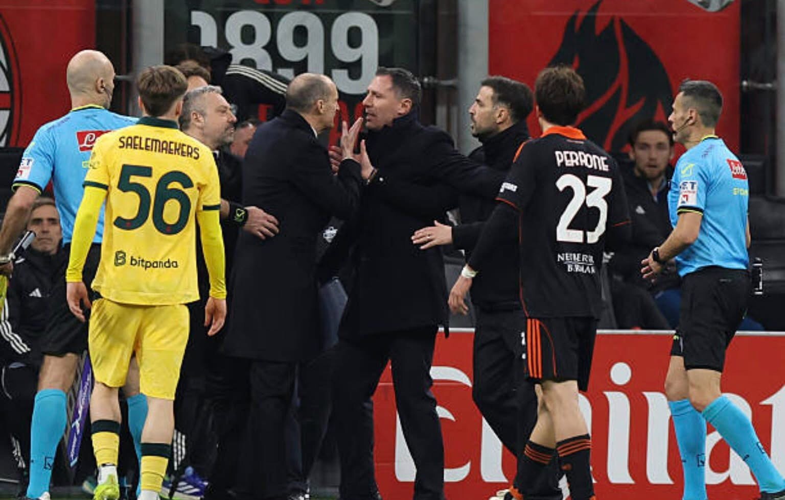 The incident stemmed from a flashpoint late in the match when Fàbregas, who had stepped outside his technical area, grabbed Milan winger Alexis Saelemaekers during a counterattack, triggering furious reactions from the Milan bench and prompting Allegri to intervene in defence of his player. The referee subsequently showed Allegri a red card, while Fàbregas avoided on-field punishment.