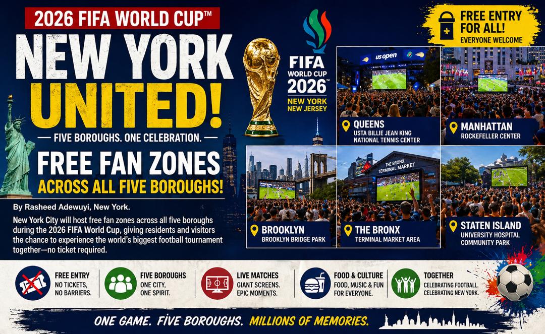 New York City will host a series of free fan zones across all five boroughs during the 2026 FIFA World Cup, in a move aimed at widening public access to the tournament. The initiative comes as concerns grow over the high cost of match tickets, with officials seeking to ensure that residents and visitors can still take part in the atmosphere of the global event.